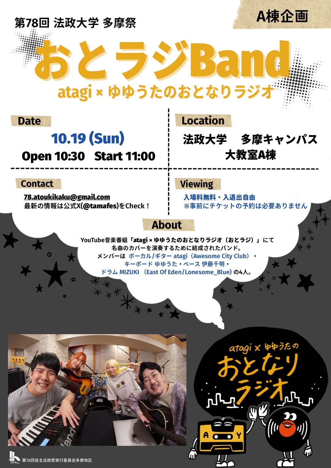 YouTube音楽番組「atagixゆゆうたのおとなりラジオ(おとラジ)」にて名曲のカバーを演奏するために結成されたバンド。